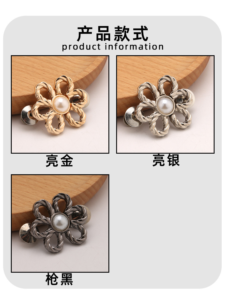 25分鐘前金屬鏤空花朵收腰扣 免縫扣 免釘褲子改小收腰神器 裙子收束腰圍鈕扣 合金縮腰扣 固定扣 調節扣 - 團購價9入組1199