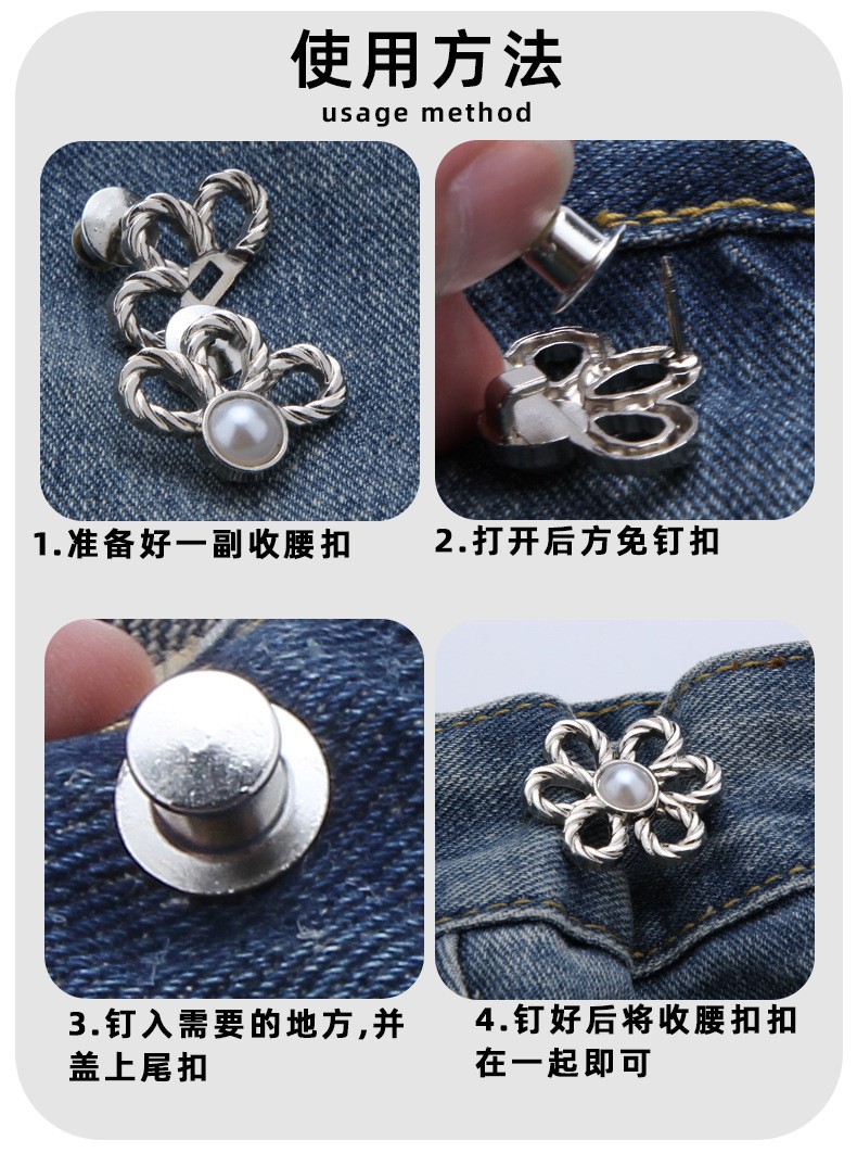 2分鐘前金屬鏤空花朵收腰扣 免縫扣 免釘褲子改小收腰神器 裙子收束腰圍鈕扣 合金縮腰扣 固定扣 調節扣 - 折扣價6入組999