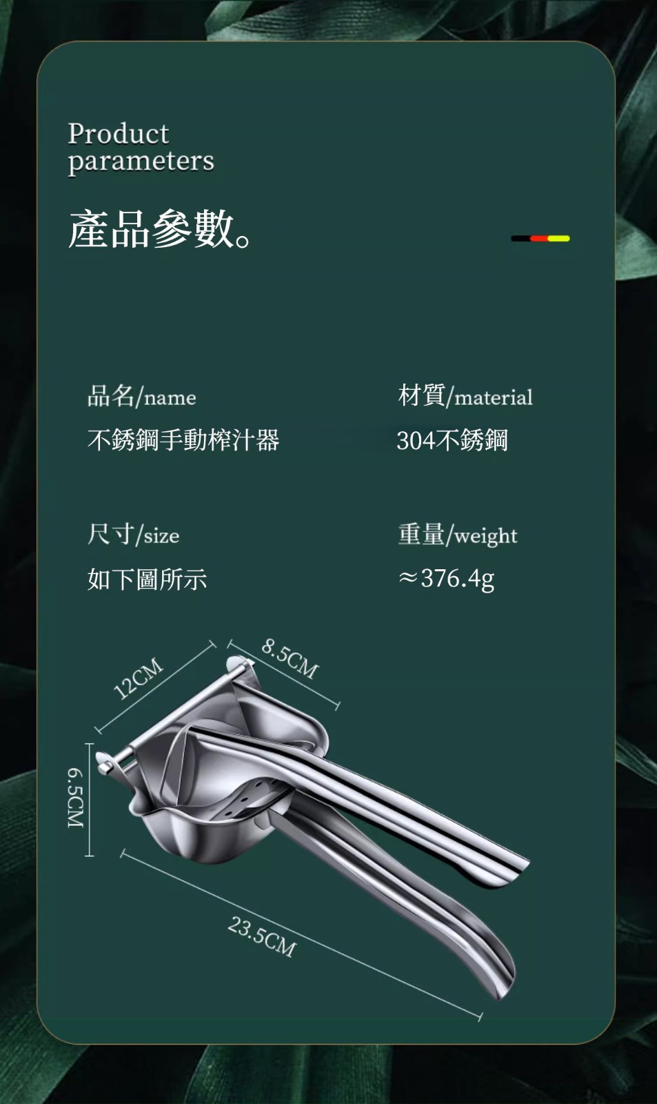 7分鐘前想喝鮮榨果汁宮又怕麻煩?304不鏽鋼手動榨汁汁來助力! 食品級材質安全耐用,鬆分離果渣與果汁,西瓜、石榴、柳丁随心榨!小巧便攜不佔地,手動按壓超解壓,新鮮健康零添加,讓你隨時隨地享原汁原味~ - 【體驗裝】1入組 NT$898