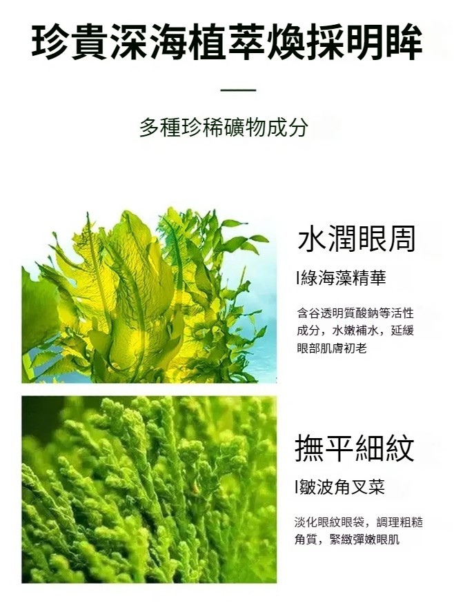15分鐘前民生堂超值優惠大促【吳醫師特調推薦】綠海藻水晶眼膜 中藥成分 100%正品 好康開團~無效全額退 - 【祛嚴重眼袋】買3送3 6罐 僅需NT$1698 均價283/罐