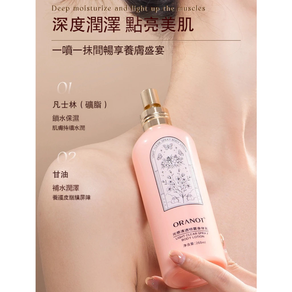 半小時前【全臺熱賣中】#買一送一#買二送二//光感清透身體乳噴霧一秒入魂身體乳噴霧,噴幾下又滑又香,自帶體香,持久留香,少女肌元氣十足! - 【美白嫩膚】買二送二 四入組NT$1099