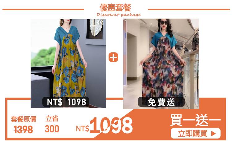 2分鐘前網紅爆款夏季新款寬鬆復古印花高端優雅連衣裙 - 【超值套餐】任選3件 僅需NT$1298